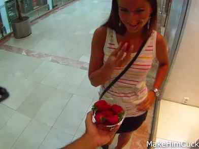 At first-ever this bombshell rejects to take a strawberry from a full stranger who approaches her in a shopping mall, but as it turns out a few minutes afterward she doesn't mind taking his huge bone in her facehole and gash. She has a uber-sexy tat on her waistline and it looks absolutely incredible when the successful stud bangs her from behind right in a public RESTROOM. His buddies would never believe he did it if not for the movie proof grabbed on his spy glasses camera.