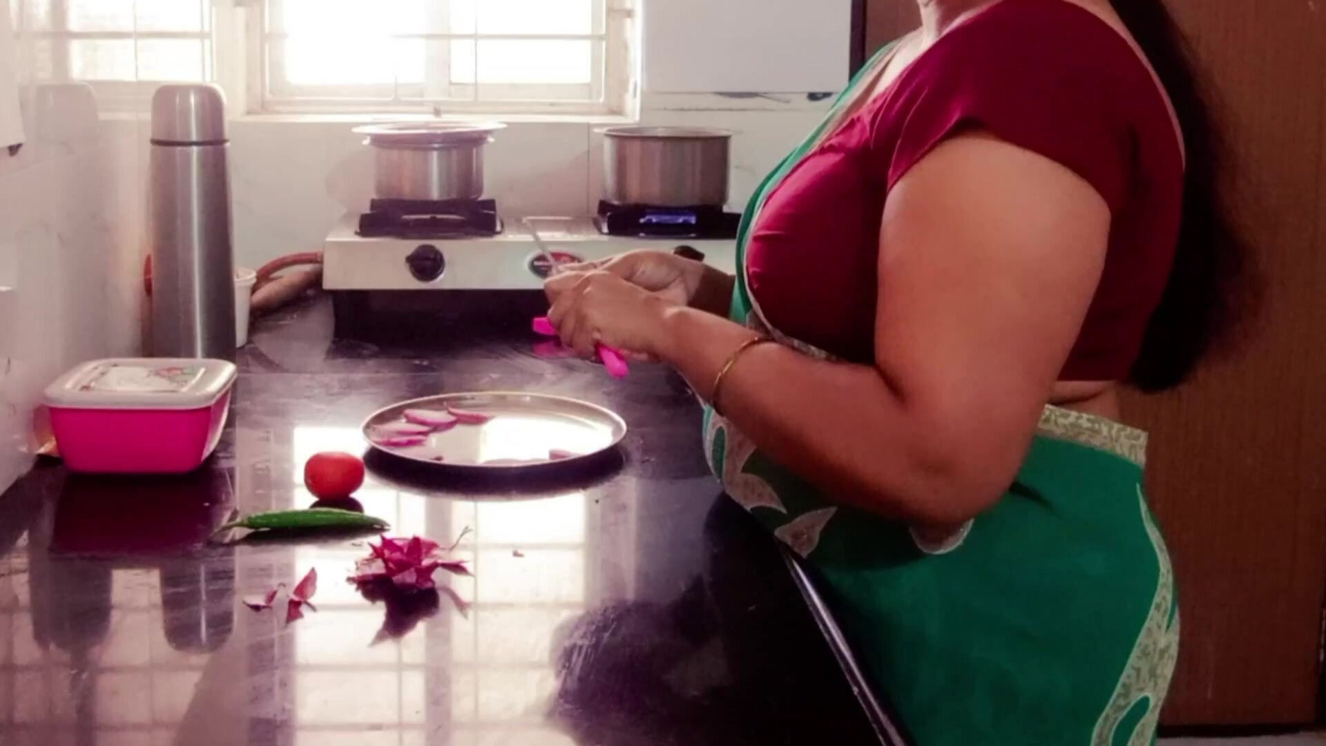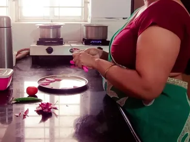Indian big melons step-mother cooking in kitchen. Sonny observed her and romped from behind jism inwards.
