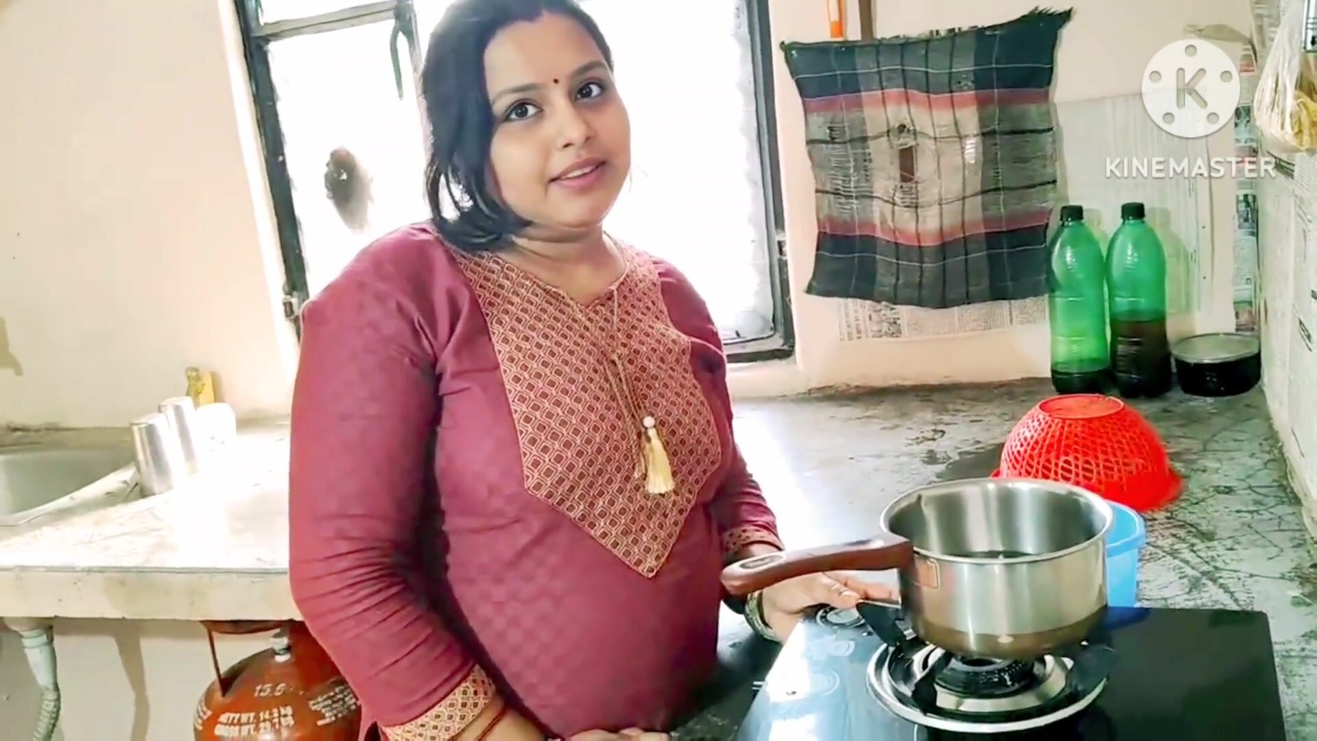Indian Desi Mummy Neighbor Dude With Kitchen