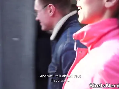 Freud would be proud to see this couple going at it, proving his psychiatric theories about the centrality of sex in human existence. But that is not what motivates this nerdy girl and her guy. No, not at all. His balls are just bursting with a three-week load from complete sexual abstinence, and she's ovulating, making her hornier than ever. They're just doing what cums naturally.